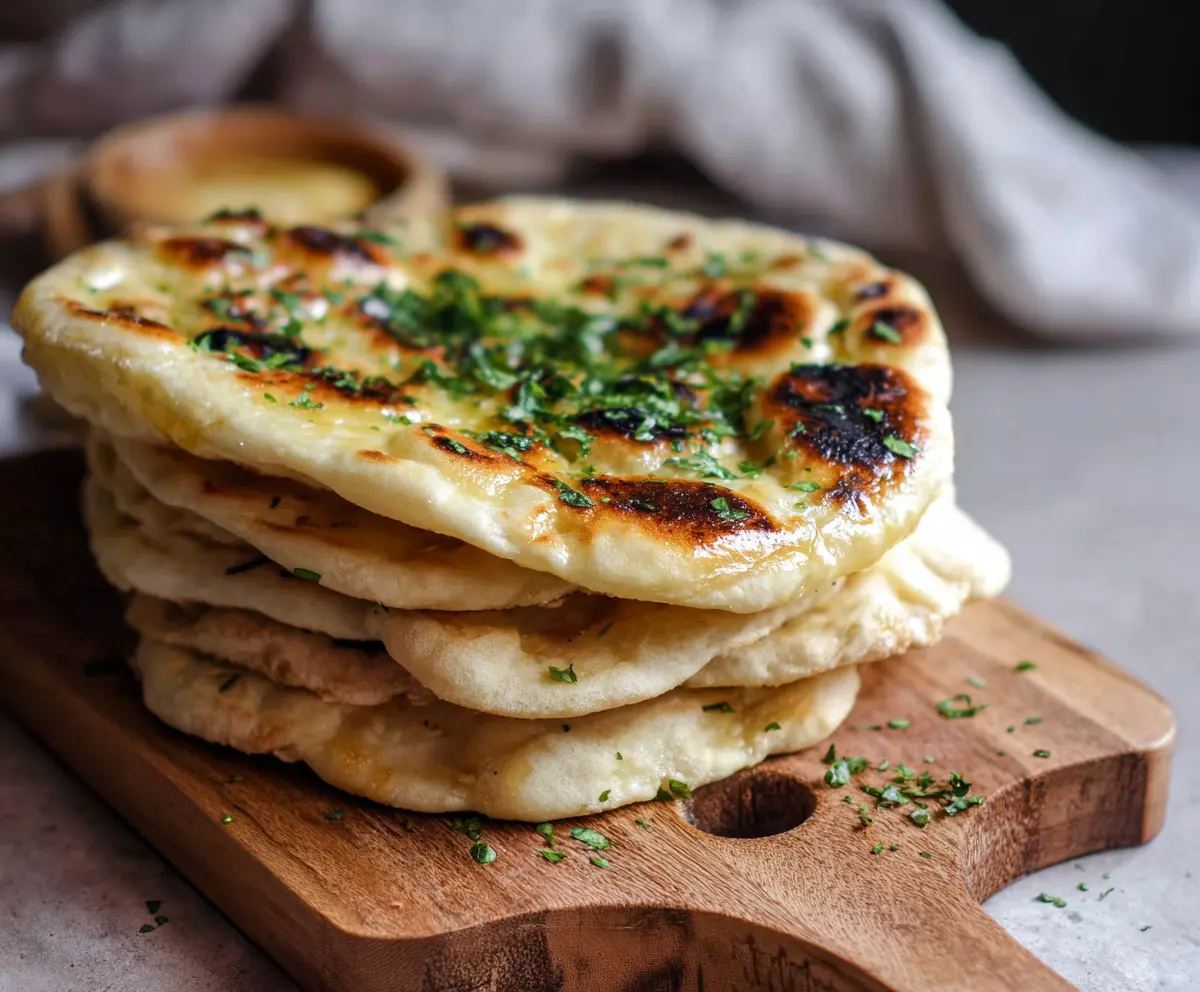 While still warm, brush the naan with melted butter mixed with minced garlic if you like. Finally, sprinkle some fresh chopped cilantro or parsley for a vibrant finish.