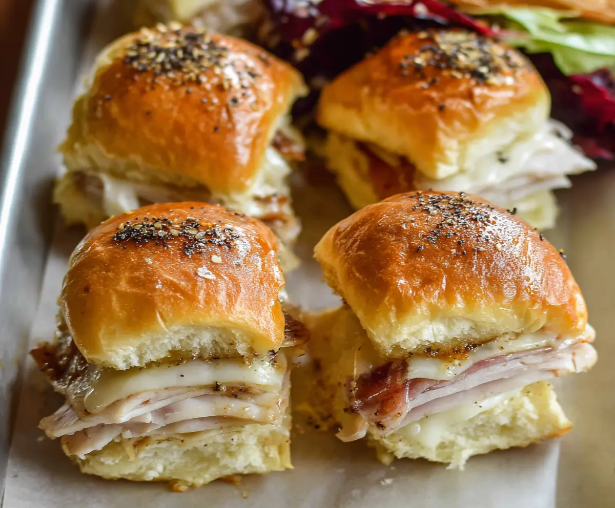 These Turkey and Swiss Sliders are mini sandwiches that are easy to make and packed with flavor! Soft rolls hold juicy turkey and creamy Swiss cheese, making each bite delightful.