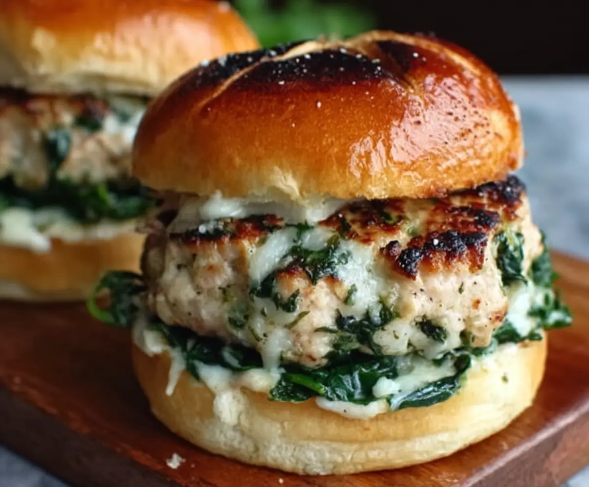 These White Cheddar Spinach Chicken Burgers are juicy and full of flavor! Each bite is packed with tender chicken, creamy white cheddar, and healthy spinach that makes them really special.