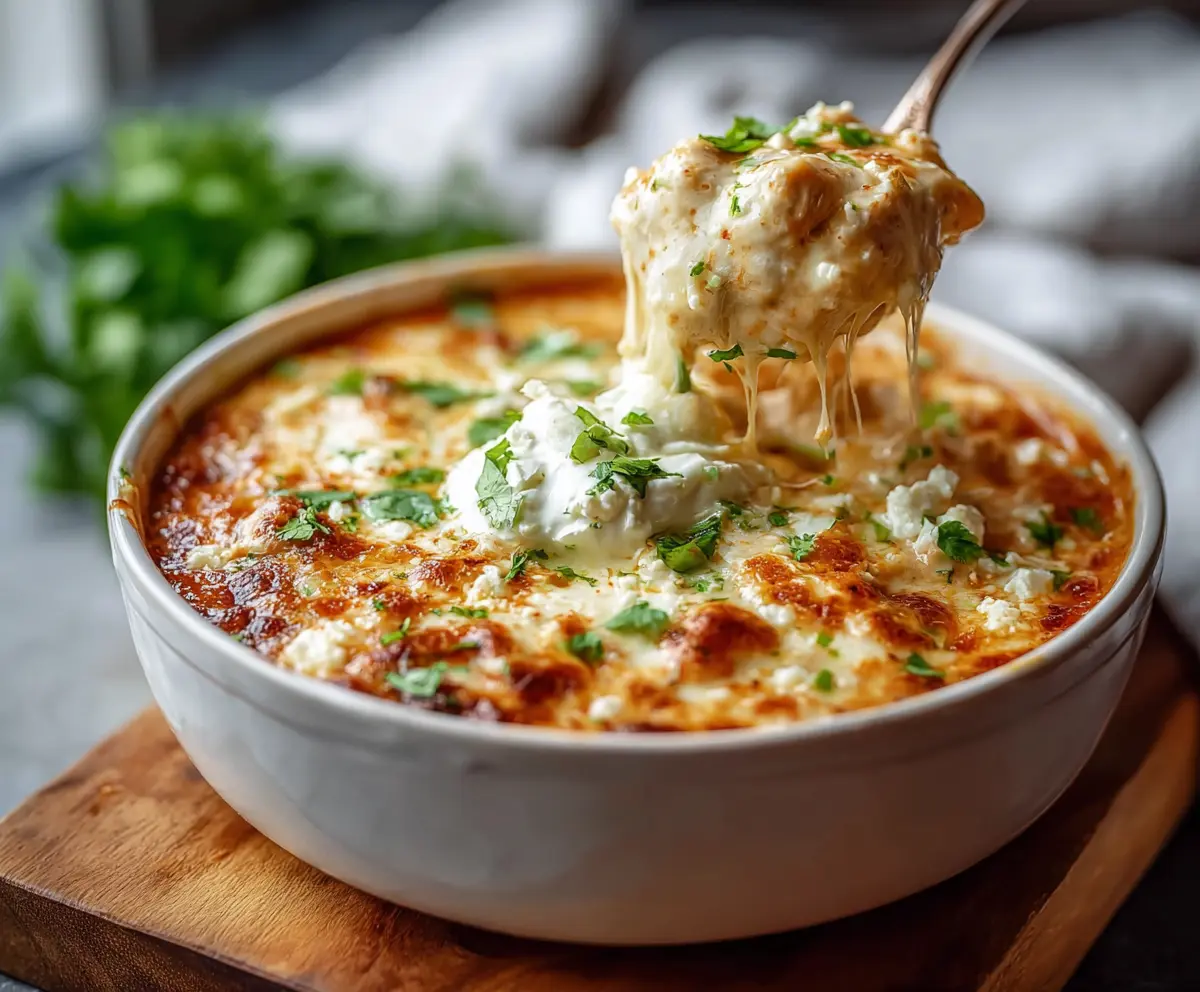 Serve this hearty, creamy bake warm, paired with crusty bread or some tortilla chips for an extra crunch. Enjoy every comforting bite!